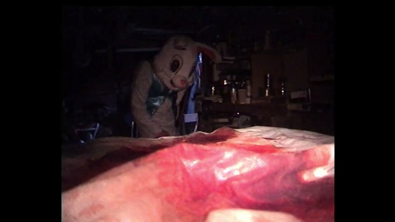 A man creates The Bunny costume.